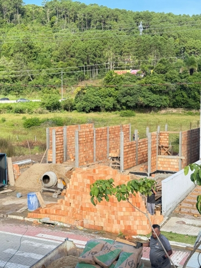 com fossa concreto mais já com o Sistema de esgoto para ligar na rede casan.